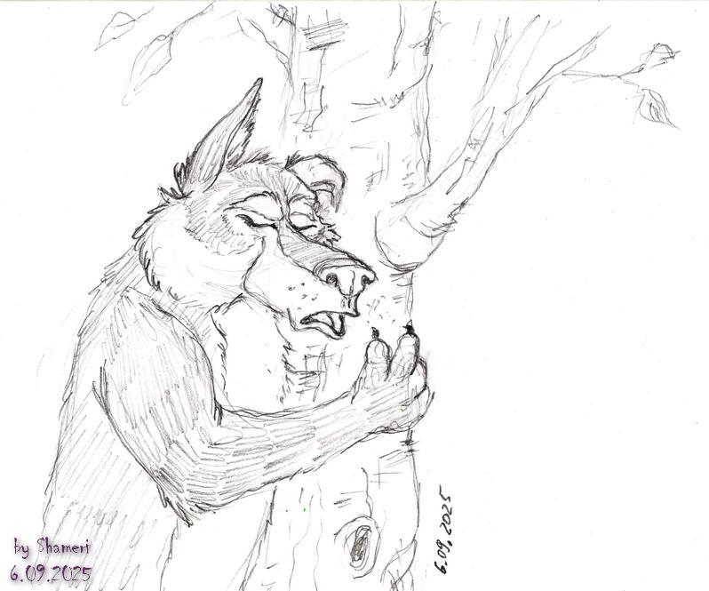 Планировала нарисовать волка, спящего на ходу, который прислонился к дереву и почти уснул. А в итоге...