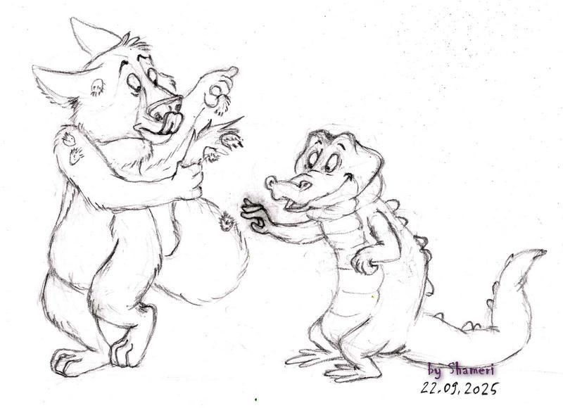 Я еще и волка нарисовала. Сонного. Пыталась нарисовать сонного. Ну, получилось, что получилось... Доберусь до сканера, выложу.