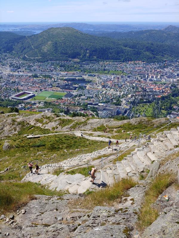 Это пейзажи и виды с горы Ульрикен, над Бергеном. Туда на фуникулере можно подняться, а спускаться по очень крутой и длинной лестнице