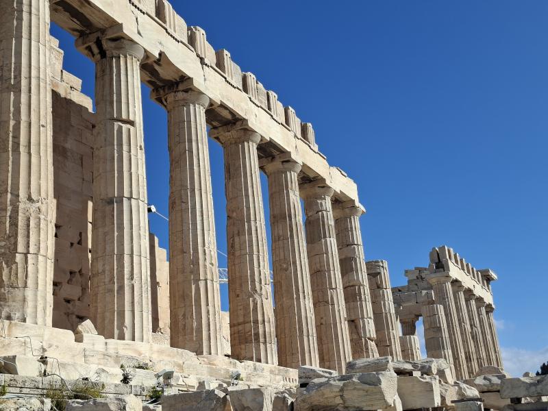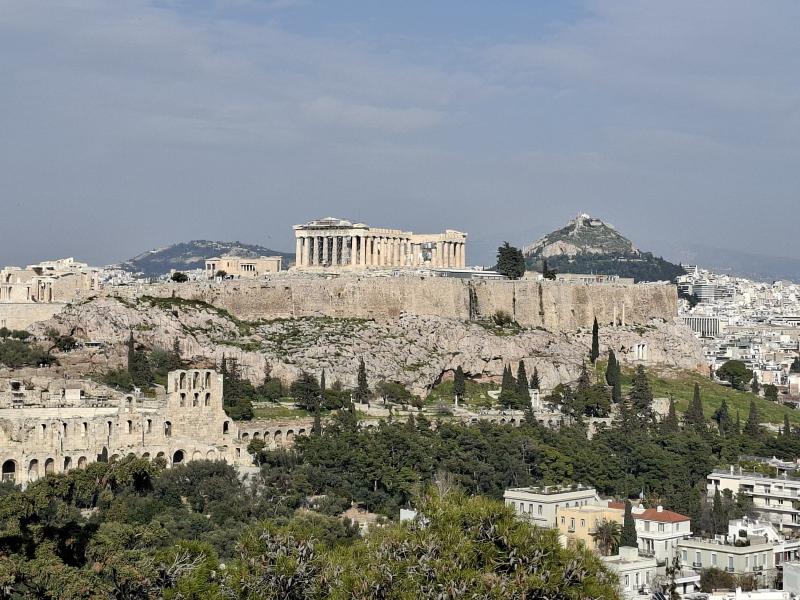 А вроде же Акрополь чо-то там реставрировали долго, там вечно все в лесах стояло. А, и вон там кран между колонн видно - это оно все еще продолжается?